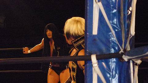 KUSHIDA選手が外道選手をフォール、
