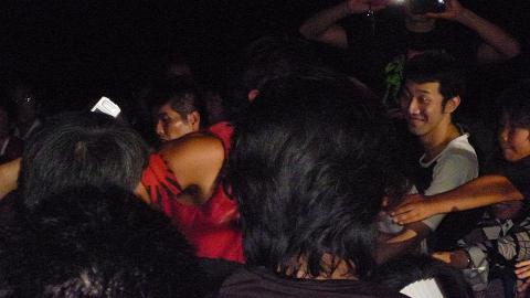 会場の女性ファンが喜んで立ち上がる