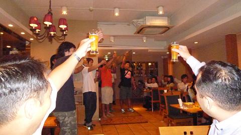 選手、ファン全員で乾杯~