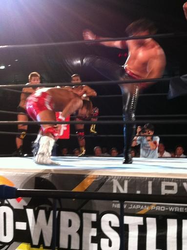 G1準優勝の内藤選手を蹴り上げる中邑選手