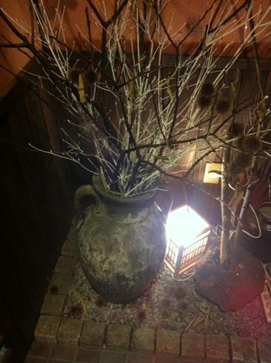 高さ1m近くある大きな壺に、季節のお花などを粋に植えてます!